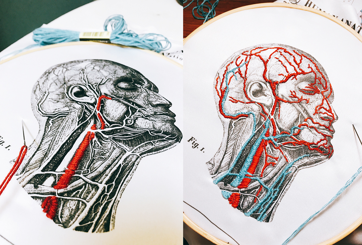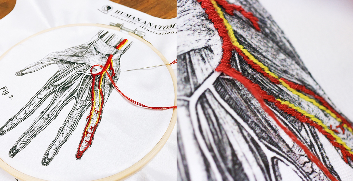 過程充滿療癒,同時需要具備耐心與細心,人人都可以創作出屬於自己的解剖圖。經過賽先生不負責任測試,美感或藝術學分零分的入門者,也能完成漂亮的刺繡作品。