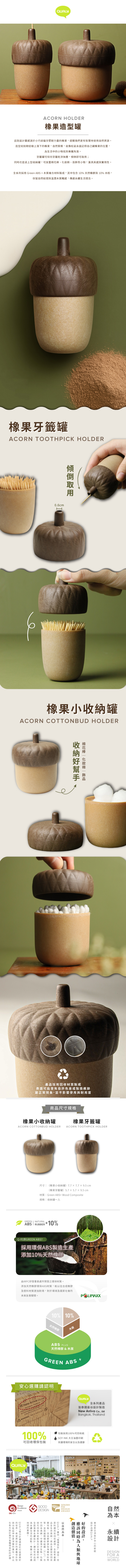 靈感來自小巧卻蘊含堅韌力量的橡果,就像松鼠永遠記得自己藏橡果的位置一樣,桌上型小收納罐,可放棉花棒、化妝棉、首飾等等任何小物品,將自然意象轉化為實用設計,造型如同剛從樹上落下的橡果,自然質樸。