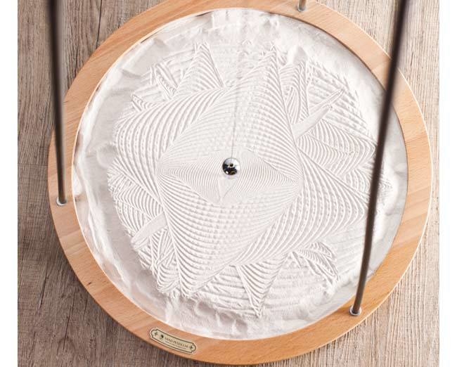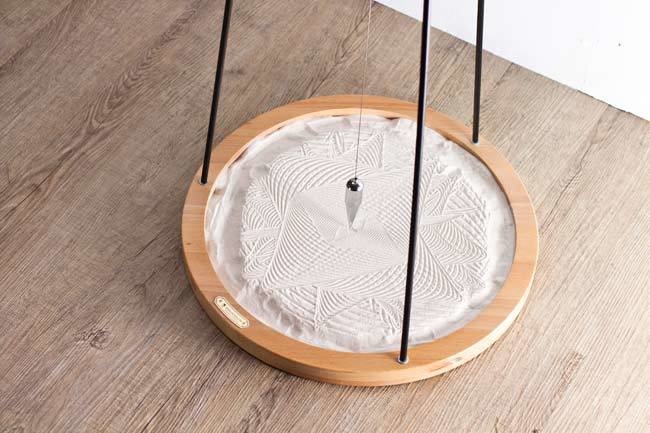 看看超大櫸木沙擺是如何運作、畫出美麗圖騰的。