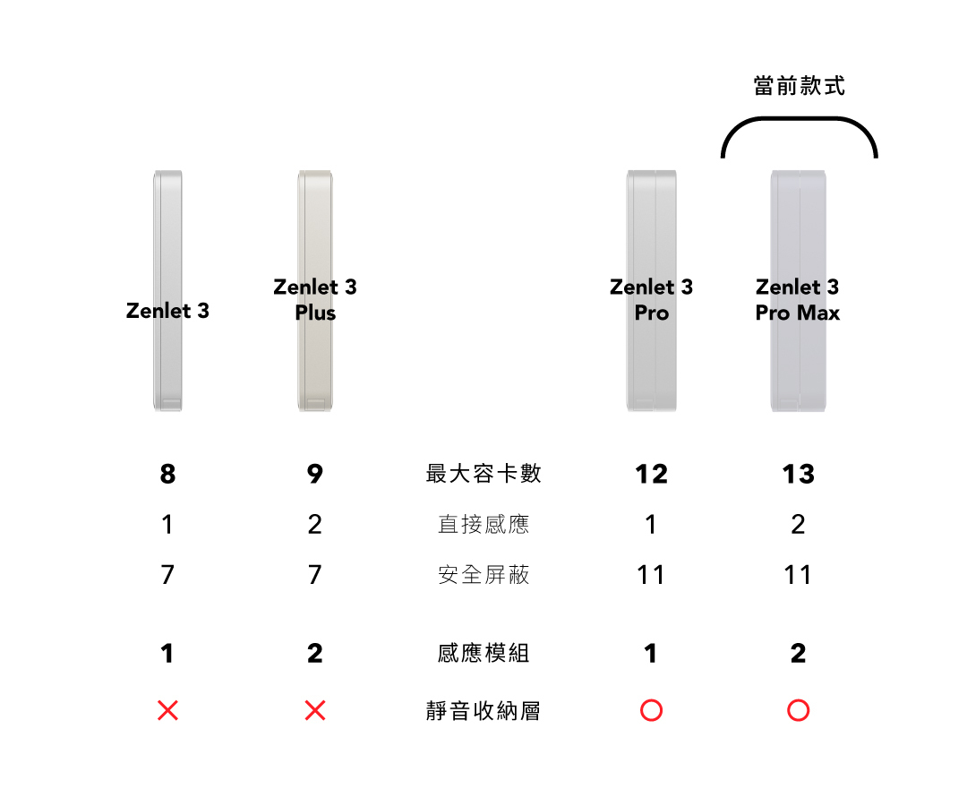 無論你對錢包使用習慣為何,Zenlet 3 系列 的 4 種規格,必有一款能符合你的需求。
