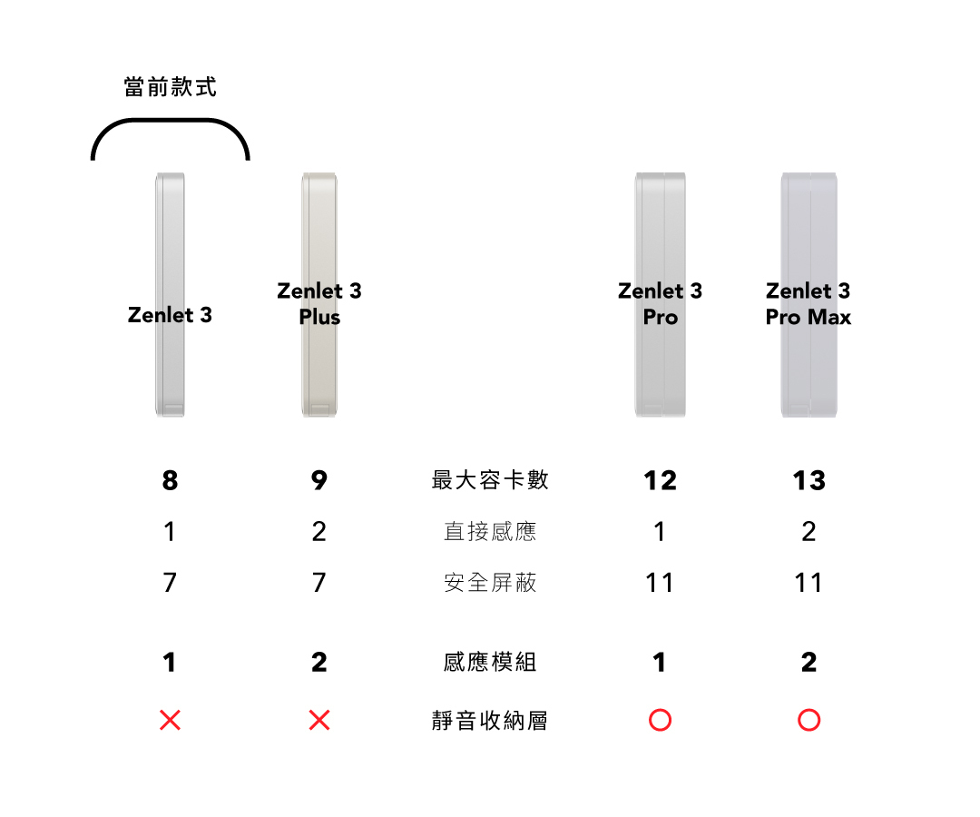 無論你對錢包使用習慣為何,Zenlet 3 系列 的 4 種規格,必有一款能符合你的需求。