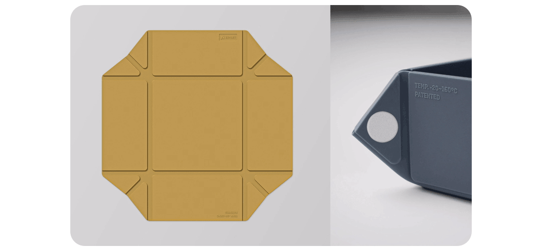 一秒成盒、好清洗、可微波,折折盒經典再進化,材質功能全面革新,搭配多樣專屬配件,餐桌好朋友升級便當神隊友。