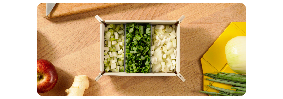 向下壓至盒底固定,即可依照個人份量需求分隔。