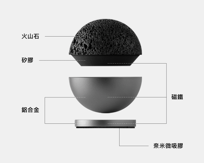 底座採用可重複使用的奈米微吸膠,讓 LAVA ball 總能隨你所欲變換舞台,且不殘留任何痕跡。